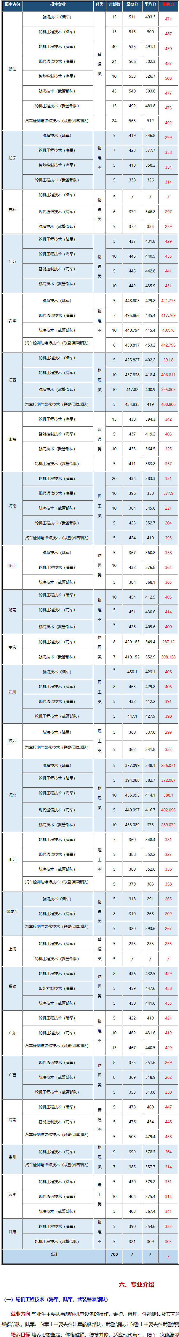 主干课程 主推进动力装置、船舶管理、船舶电气、轮机基础、动力设备拆装、军事信息技术、军事法概论、队列指挥教学法等课程。