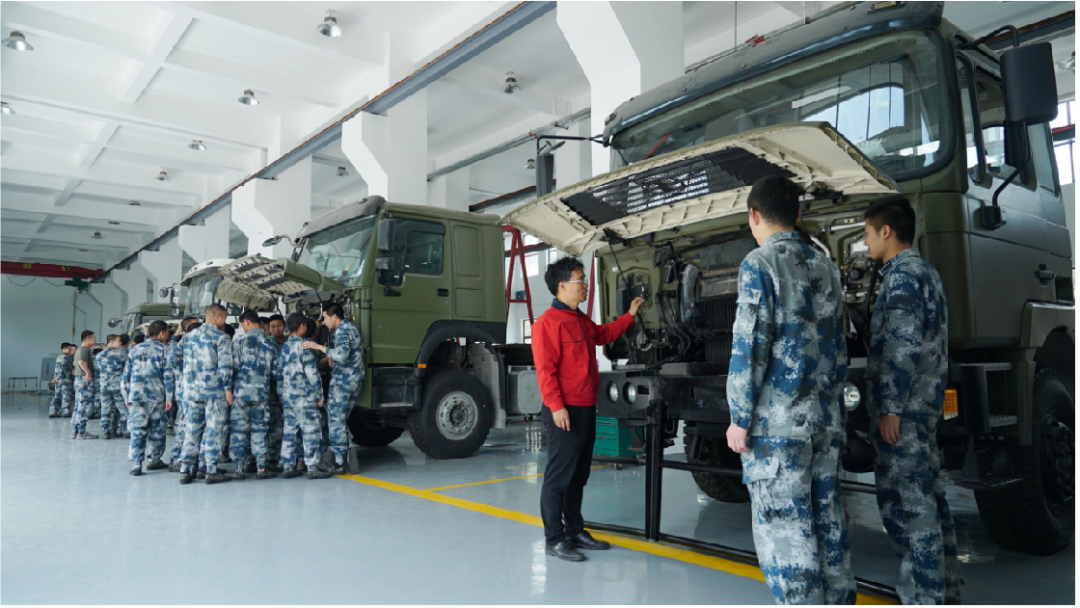 专业特色:汽车检测与维修技术专业属于交通运输大类。本专业依托陕汽营销服务网络学院、一汽解放网络学院等数字化平台资源,一汽解放、东风商用车、陕汽重卡等生产性实训基地校企合作平台,培养熟练掌握军用车理论与实践技能的高素质复合型军士人才。课程设置包括:机械制图、机械基础、电工电子技术基础、液压传动技术、柴油发动机构造及控制系统检修、军用车底盘构造与维修、军用车电气设备及控制系统检修、汽车使用性能与检测技术、汽车构造、汽车运输企业机务技术管理、新能源汽车概论、军用车辆保养与维护实训、军用车辆维修实训等。