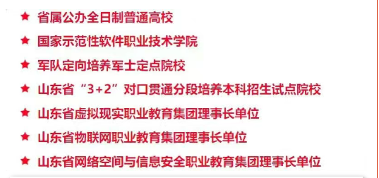 山东信息职业技术学院坐落于世界风筝之都、全国文明城市和部省共建职业教育高地中心城市——山东省潍坊市,是山东省人民政府批准设立、教育部备案的省属公办全日制高等职业院校,隶属于山东省工业和信息化厅,是山东省创立最早、专业最全、规模最大的电子信息类高职院校。学校是教育部“国家示范性软件职业技术学院”首批建设单位、部队军士人才培养定点院校和山东省“3+2”专本贯通培养院校,是教育部职业院校数字校园首批建设单位、全国职业教育信息化标杆校建设单位和首批山东省智慧教育示范院校,是国家中小企业数字化转型促进中心人才培养(公共实训)基地、国家工业互联网数字化转型人才培养基地、工信部信息技术应用创新人才培养与评价基地和山东省“互联网+教育”应用研究基地、山东省全民数字素养与技能培训基地,是首批山东省红色文化传承示范校、山东省德育工作优秀高校、山东省绿色学校、山东省节水型高校和山东省依法治理示范校试点院校,曾获“全国信息产业系统先进集体”“山东省职业教育先进集体”等荣誉称号,连续7年被评为市级精神文明校园,2022年入围省级文明校园提名学校。
